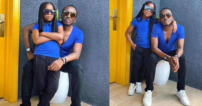 Bovi and his daughter rocked a blue T-shirt, black joggers and a white sneakers to match. Sharing the photos the comedian who has been blessed with 3 boys and 1 girl revealed he never wanted a girl child.