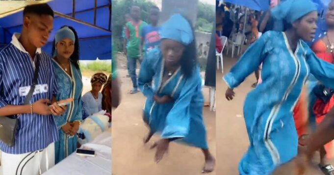 A Nigerian woman has gone viral after a video captured her dancing trench tok moves during her baby’s naming ceremony, with her friends eagerly joining in.