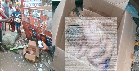 It was gathered that the child was dumped by the mother in a carton along Bank road in the area. Unfortunately, the baby boy was found dead this morning after he was left unclothed overnight.