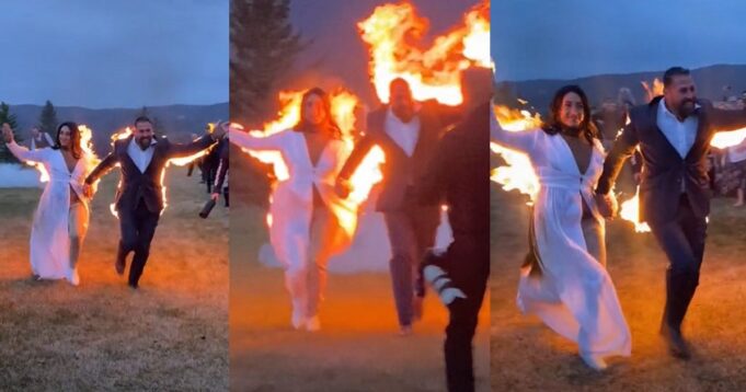 A video of the fascinating event was shared on TikTok by one of their wedding guests, Russ Powell, and he captioned it, “Ambyr and Gabe met on set, their wedding exit makes sparklers look boring.”