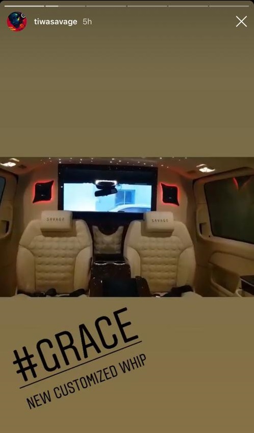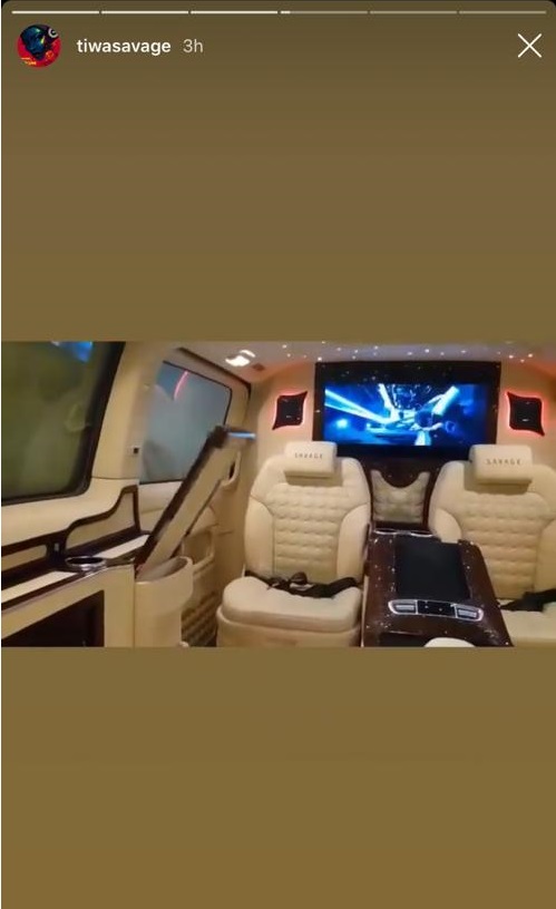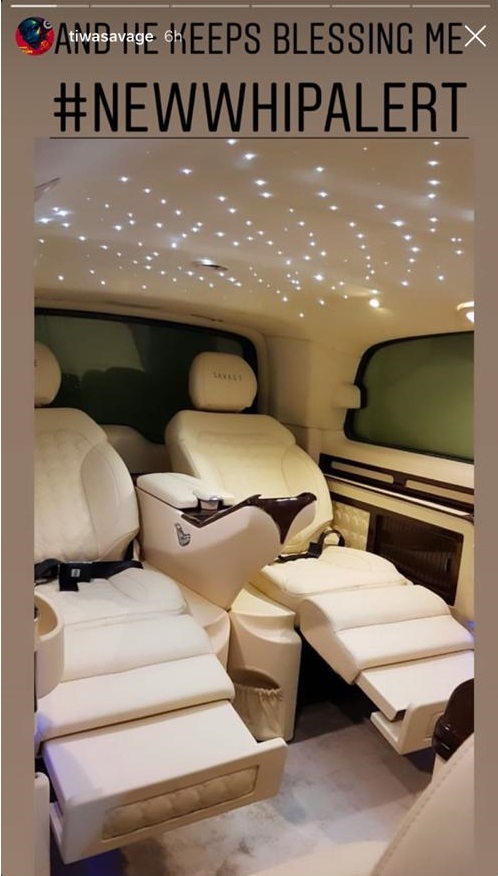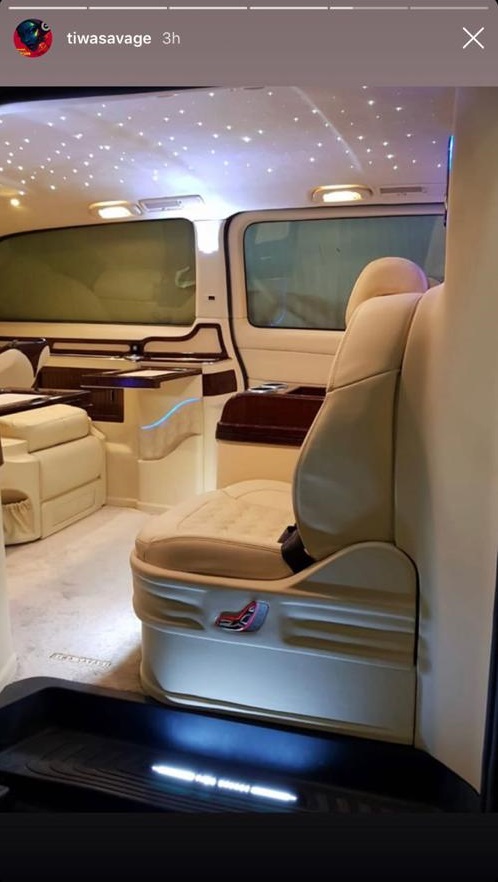 Tiwa Savage who showed off the interior of the new car she bought and its customized seats, tweeted;