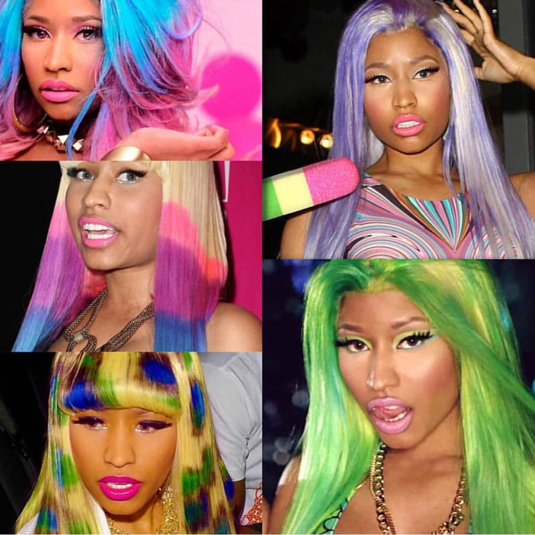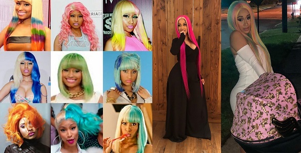 Nicki rocked a wig with a colourful hue a day after Cardi B rocked a pink wig with blonde tresses – this prompted Cardi fans to accuse Nicki of being a copycat.