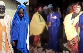 70-year-old Alhaji sprays money on his 15-year-old bride as she dances for him...