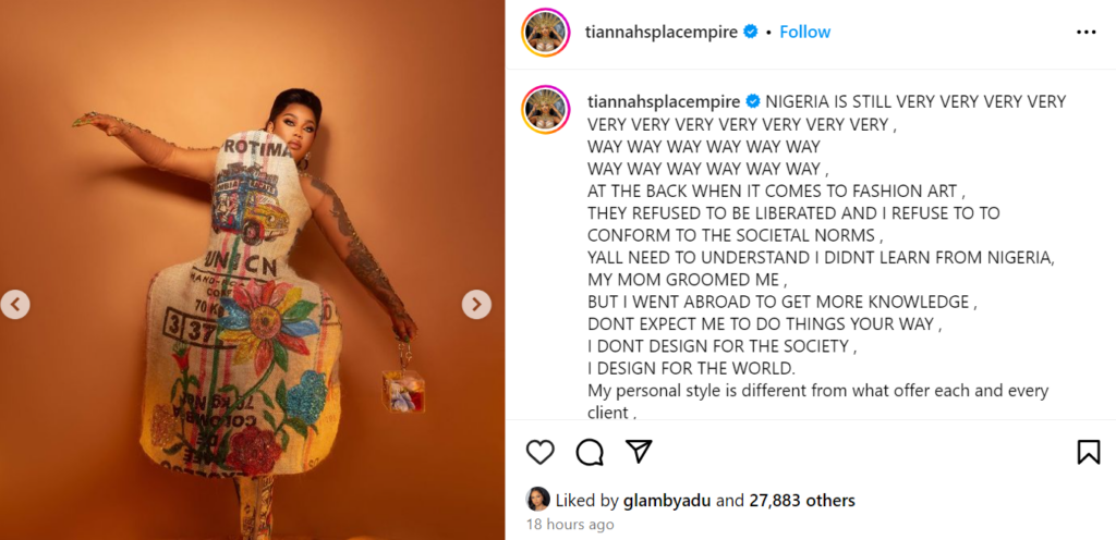 She emphasized that she designs for the global stage, not Nigeria alone, so she is unperturbed by the backlash.