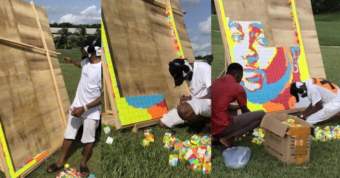 A young and quite talented visual artist is being praised on social media after he displayed his ingenious creation of a portrait of singing sensation, Davido using Rubik’s cubes.