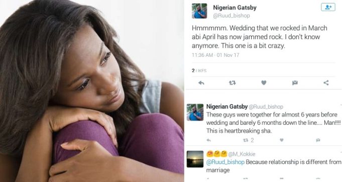 According to a Twitter user, the estranged couple had had their wedding sometime in March/April after six years of being together but called it quits some months after they said “I Do”.