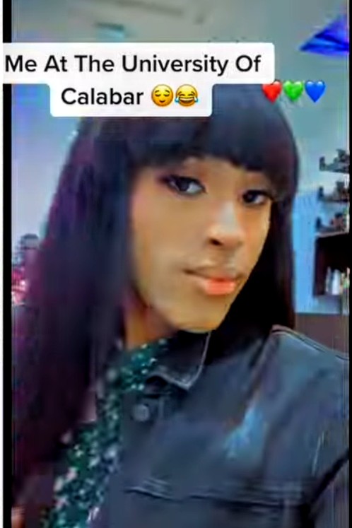Jefferson revealed that he started crossdressing after he gained admission into the University of Calabar as a 17 year old. Taking to TikTok, he shared the first part of the slideshow which showed him as a male and captioned it, “The 17-year-old son my parents sent to the university.”