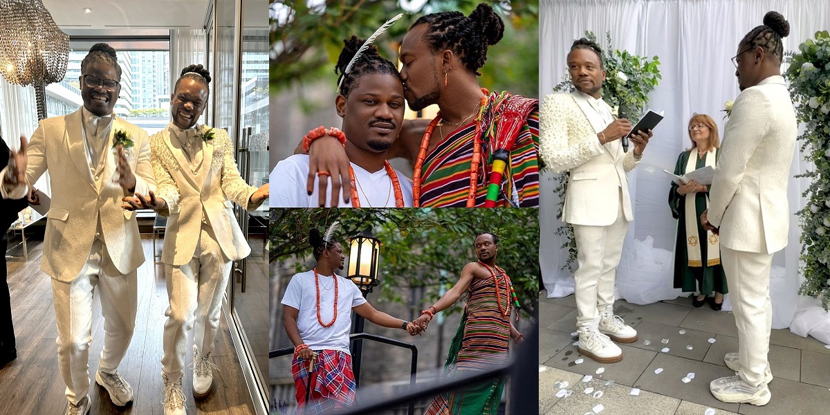 A Canada-based Nigerian gay couple have caused a huge stir on social media after getting married in a lavish wedding ceremony.