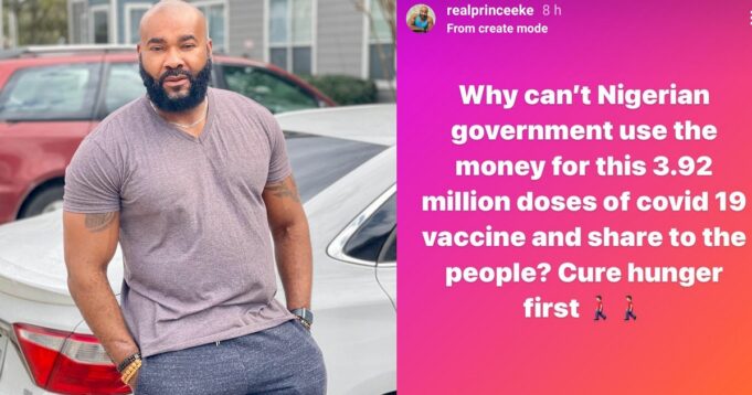 Taking to his Instagram story, the actor wrote; “Why can’t Nigerian government use the money for this 3.29million doses of covid 19 vaccine and share to the people? Cure hunger first”