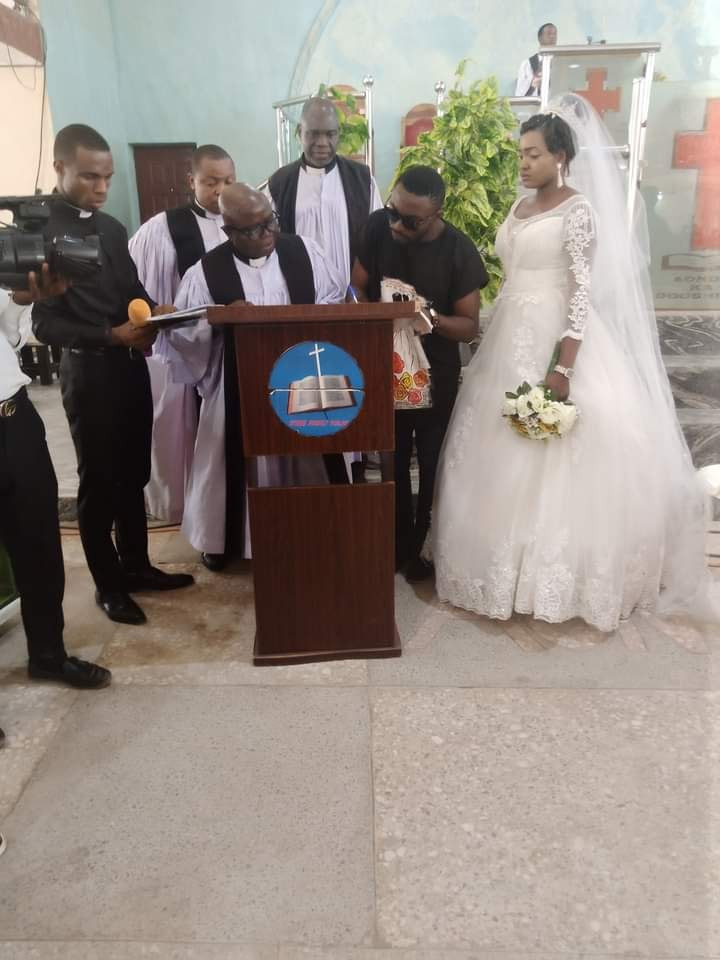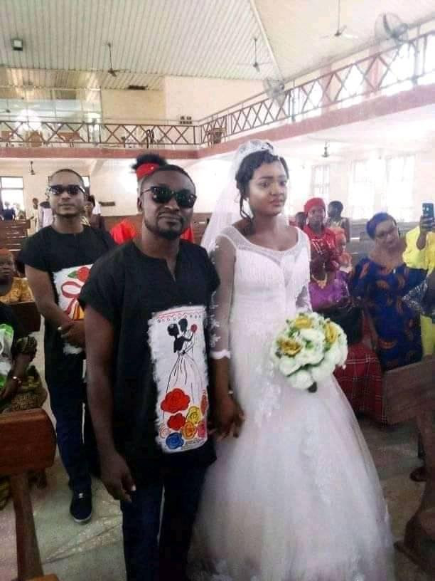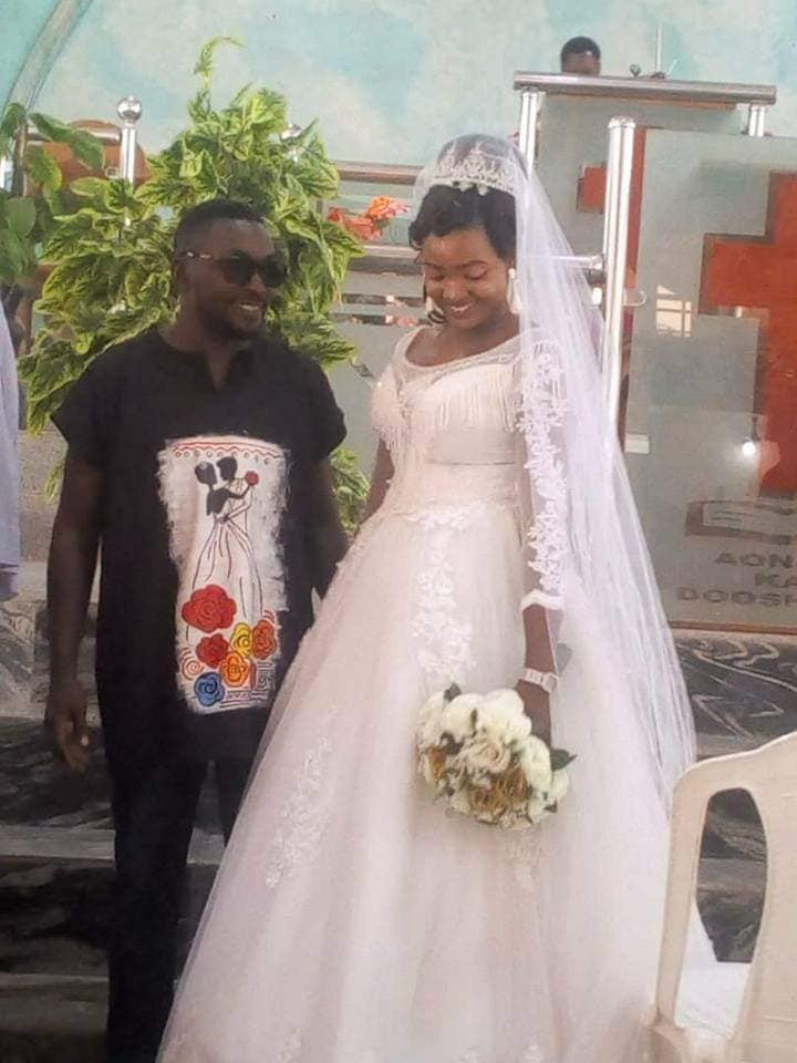The Benue state man who tied the knot with his lover on Saturday, March 6th, 2021 at NKST Church, Makurdi, was casually dressed while his bride was decked out in a full-length white wedding gown.