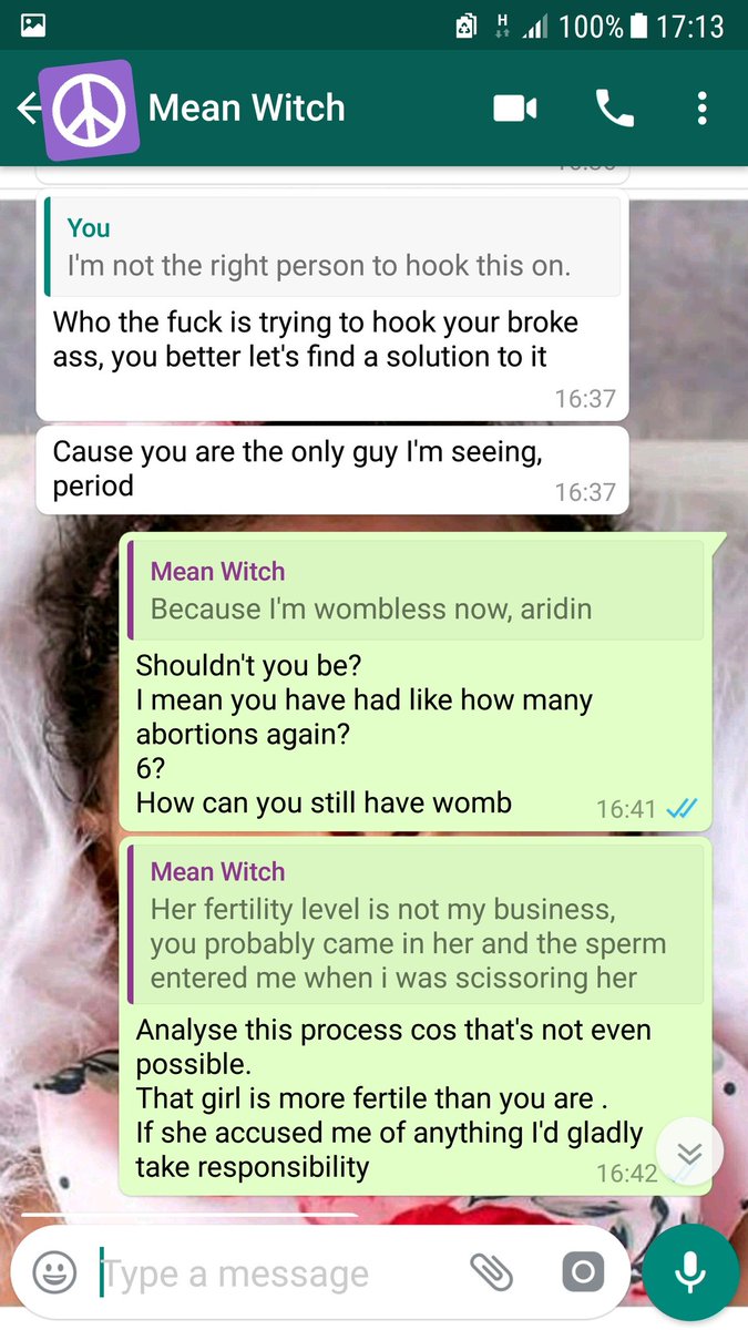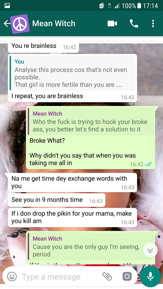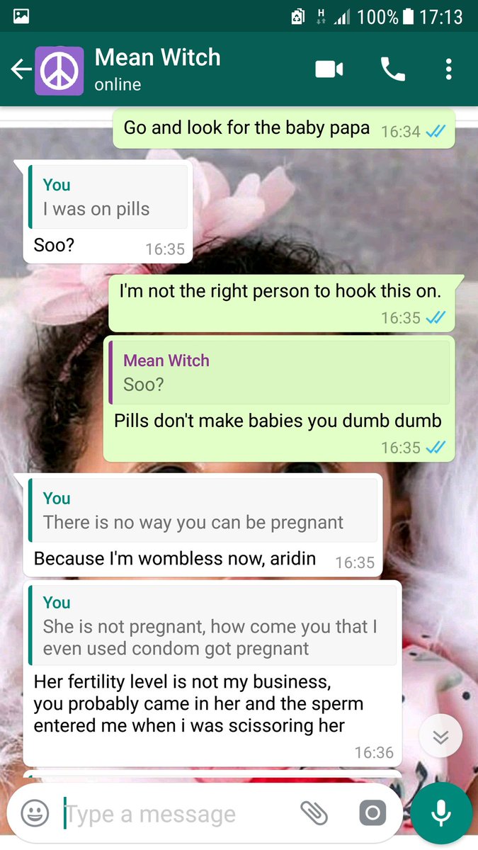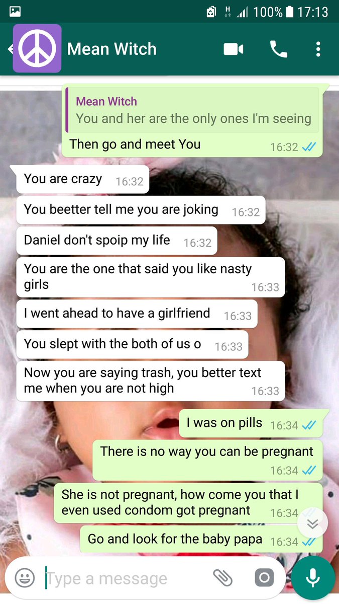 My now ex-girlfriend is trying to hook me with a pregnancy, I swear I’m not responsible and you can tell from the chat she is been devious, I don’t want to be a father to a child that’s not mine, I’m bringing this here just in case she does what she threatened
