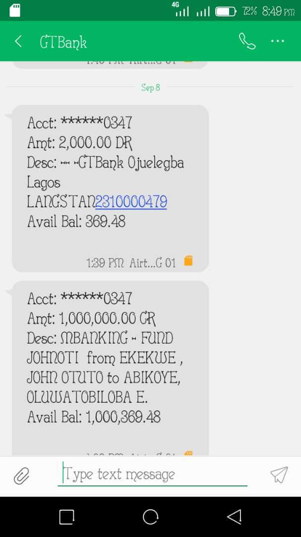 Thank God for His grace. on the said date, i just withdrew my last available balance leaving me with just N369. And alas i got alert of N1million, you can imagine the different thoughts that came to my mind , but i had to keep calm, and thank God for how it all turned out. Its good to be good.