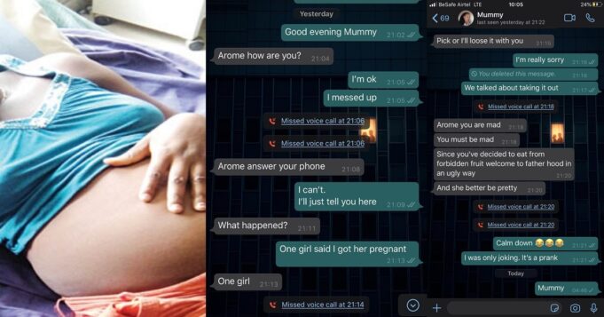 Sharing the screenshots of the convo, the twitter user wrote; “I pranked my mom yesterday about getting a girl pregnant and this was her reply.”
