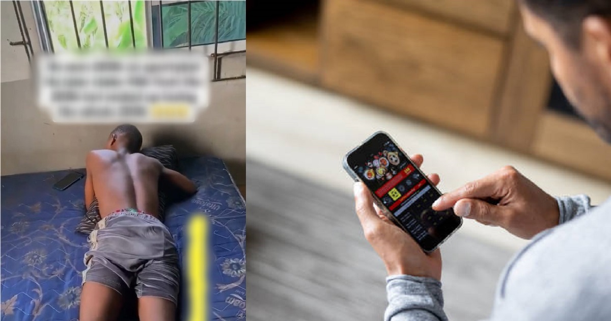 A young Nigerian man has been captured looking sad and dejected, after he lost 200k to sports betting, a few minutes after winning it.