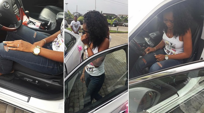 A Nigerian lady is already basking in the spirit of Valentine after the day came quite early for her when her boyfriend proposed to her with not only a ring but also with a white Lexus car.
