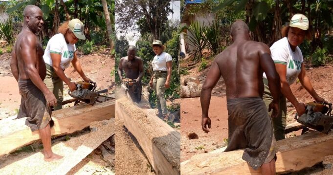 The lady whose father is a sawyer, shared photos of herself in her father’s workshop and revealed that it was through that means he was able to sponsor her from Nursery to University level.