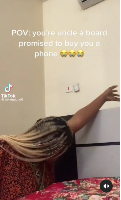 She uploaded the video on TikTok, with the background sound “Osanobua, who do me like this?”