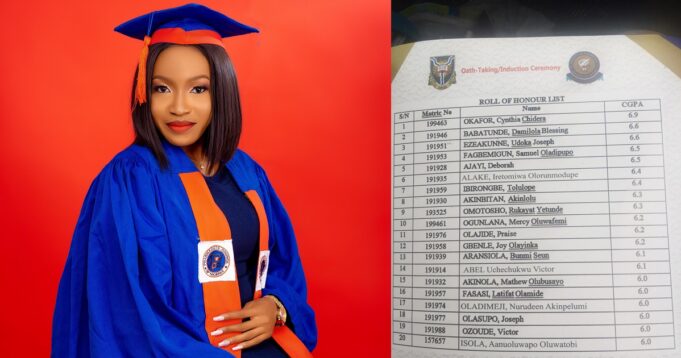 A Young Nigerian lady identified Cynthia Okafor, has been praised by Nigerians on social media after she emerged as the best graduating student in the Faculty of Pharmacy, University of Ibadan.