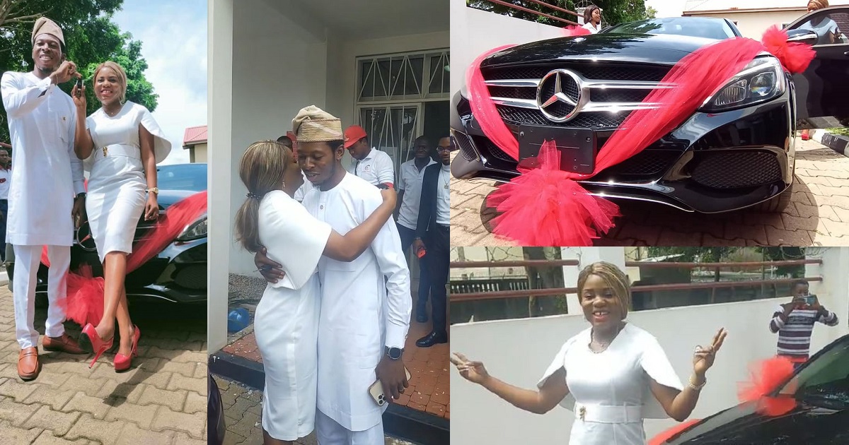 A Nigerian lady has warmed hearts online after she romantically surprised her husband in a really sweet way by acquiring a Mercedes-Benz car for him as they marked their 7th wedding anniversary.
