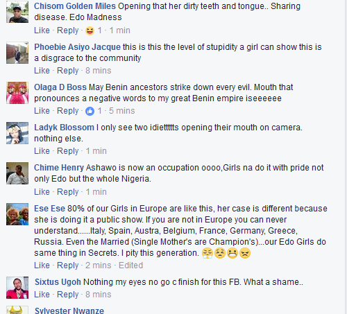 This however got negative views from folks as they slammed her for being a disgrace to Edo state and Nigeria.