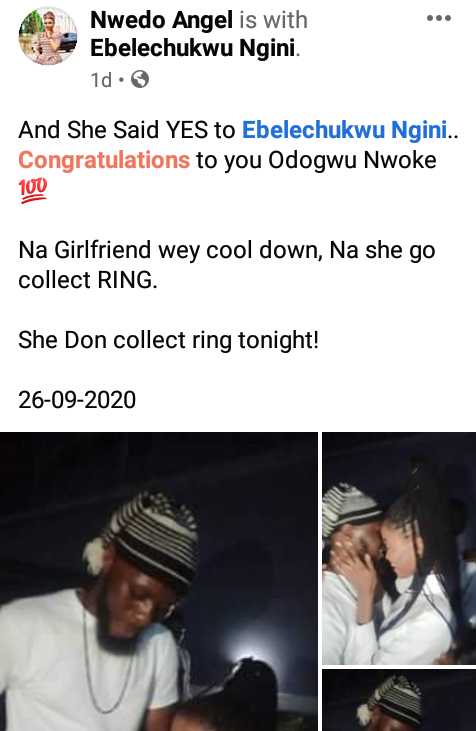 “And She Said YES to Ebelechukwu Ngini.. Congratulations to you Odogwu Nwoke