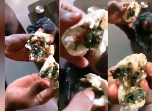 The lady had purchased the meatpie worth N50 from a street vendor but it turned out to be a “Vegetarian’s meatpie” as she found green leaves inside.