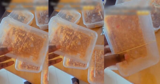 Displaying the content she received in a video shared on TikTok, little portions of Jollof rice and proteins were seen in a plastic container.