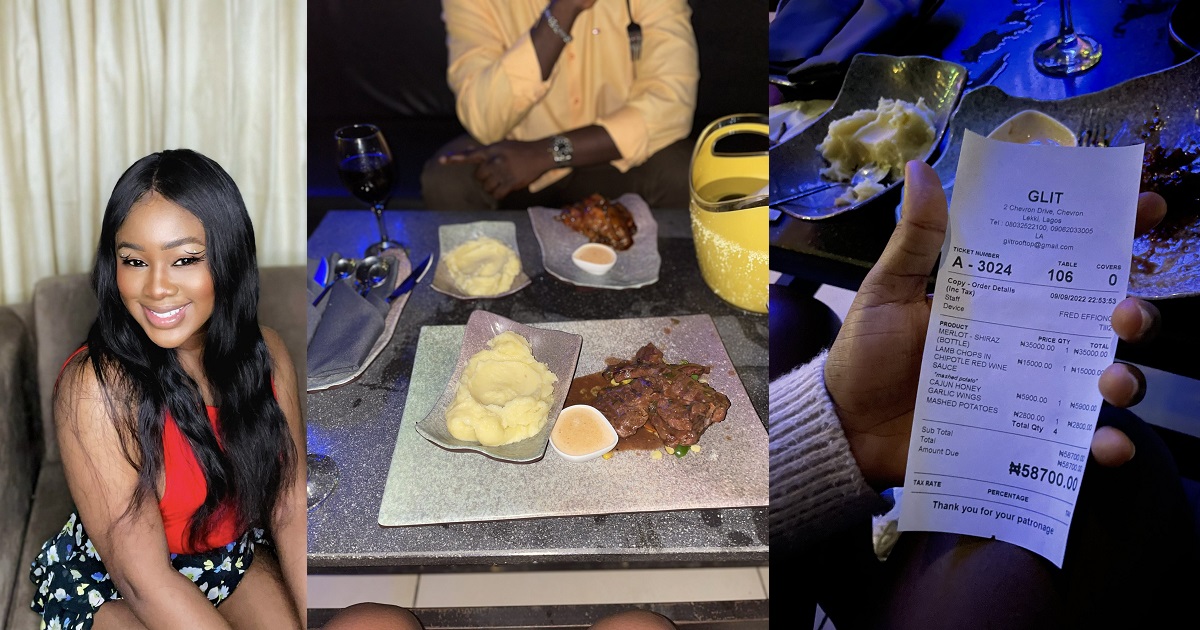 She shared a photo of the food they were served at the restaurant as well as the the bill she received after the fine dining and it amounted to #58,700.