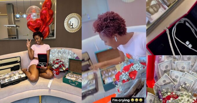 The influencer received diamond jewelries, stacks of Cash, and other gift items reportedly worth over N30million.
