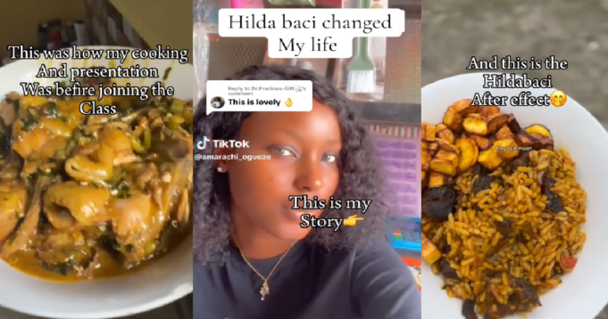 The lady @amara_ogueze narrated in a video she uploaded to TikTok how she went from having no prior experience in cooking to becoming an expert chef after taking Hilda’s “Home to Pro” classes, which were aimed at teaching individuals how to prepare various dishes.