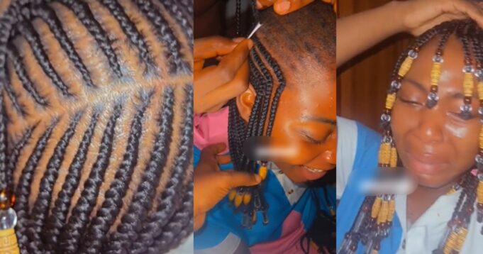 In a trending video, the lady could be seen complaining bitterly and wailing about how painful the hair was after making the Koroba braids hairstyle with beads.