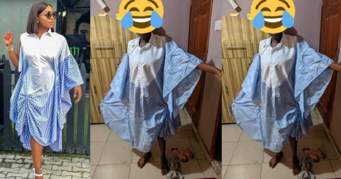 A twitter user who joined in the buzz took to the platform to also share side-by-side photos of the dress her husband ordered for her and what was delivered.