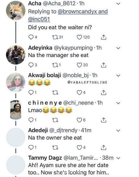 However, it turned into a funny narrative for twitter users as they gave her sarcastic replies and funny comments over the fact that she incurred that amount on just a single date.