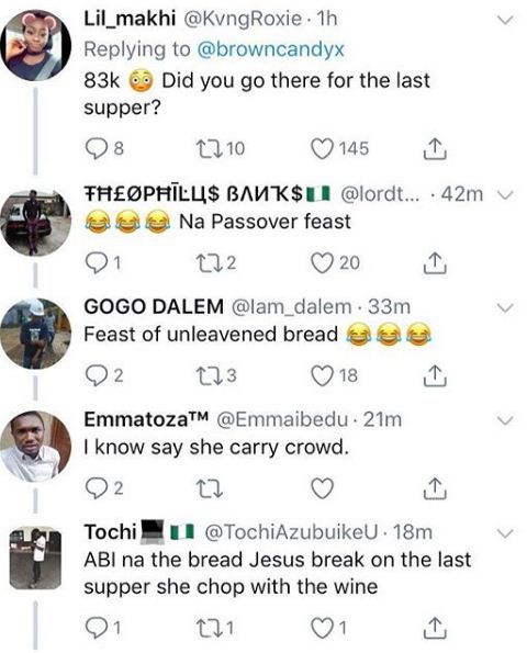 Even when my church dey do Thanksgiving them no dey spend reach 83k?? Hanty I raise yansh for you pic.twitter.com/kSQBc6ypXB