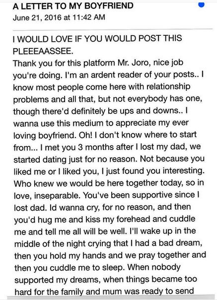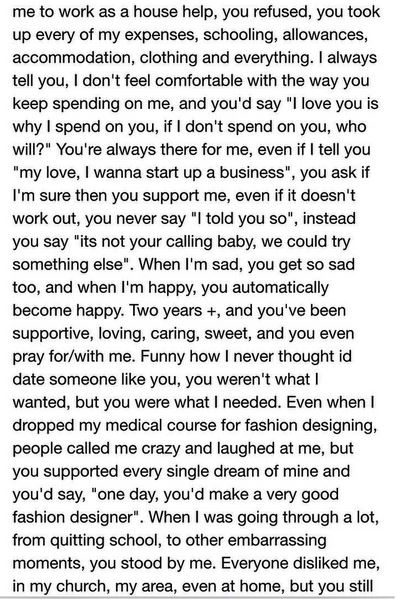 A Nigerian lady has written a very appreciative love letter to her current man in appreciation of his contributions to her self-development just when she thought her life was over.