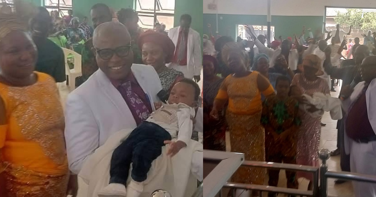 “A few weeks ago, the Lord answered by fire and granted their desires. The baby came and today Sunday was the baby’s dedication at the El-Shaddai Deliverance Church Inc. located at Ijeun-Titun, Abeokuta. Indeed, weeping may endure for a night but joy comes in the morning. Let somebody shout Halleluyah”. Arowojolu wrote.