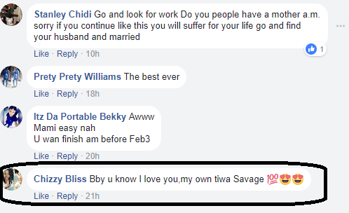 In reply, Chizzy wrote: “Bby u know I love you,my own tiwa Savage”