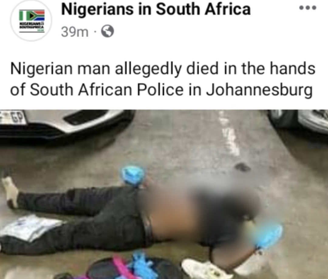 A Nigerian man, Abiodun Victor Olawunmi, has reportedly lost his life while in the custody of the South African Police Service in Johannesburg.