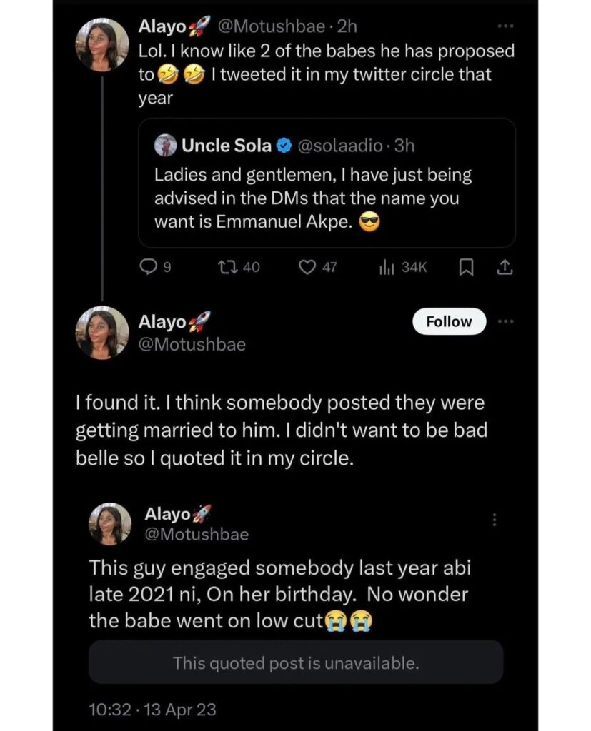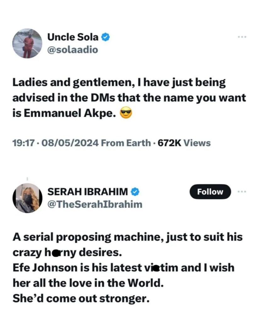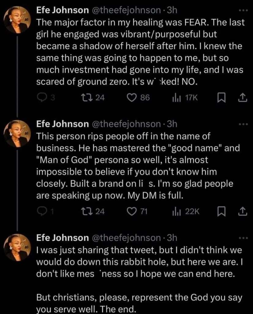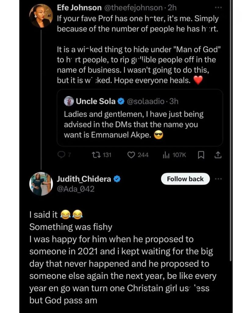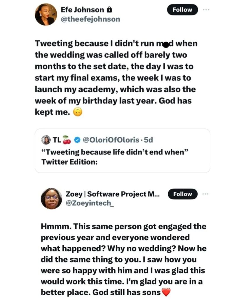 Following her revelation, other X users disclosed that the young man was engaged to another woman just a year before his engagement to Efe Johnson, but it didn’t lead to marriage.