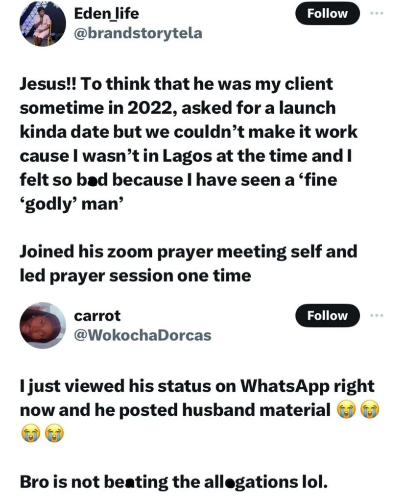 They also alleged that Emmanuel presents himself as a “Lover of God” and exploits this facade to persuade Christian women to accept his proposal, only to abandon them shortly before the wedding.