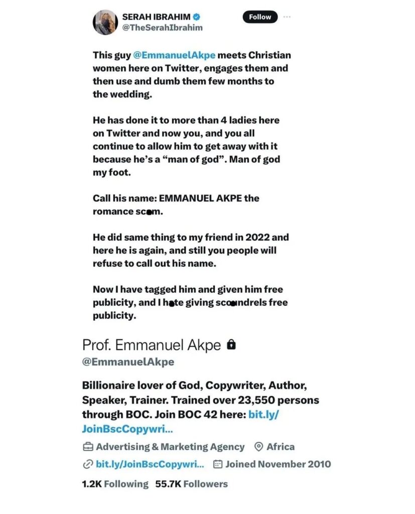 A Nigerian man, identified as Emmanuel Akpe, is currently trending on social media for allegedly being a serial engager who targets Christian women.