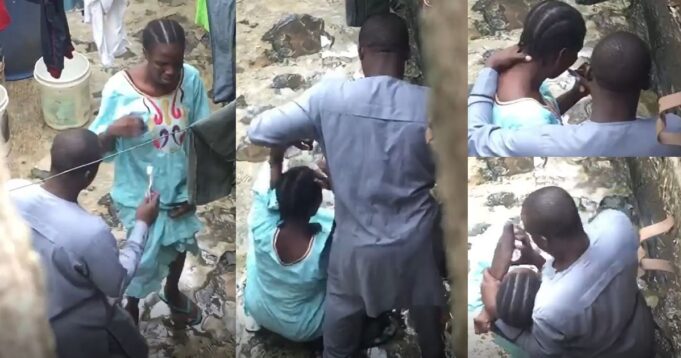 The young man is seen in the viral video helping his wife, who’s said to be a mother of three, brush her teeth. He gives her blows and slaps at intervals when she tries to resist or stop him.