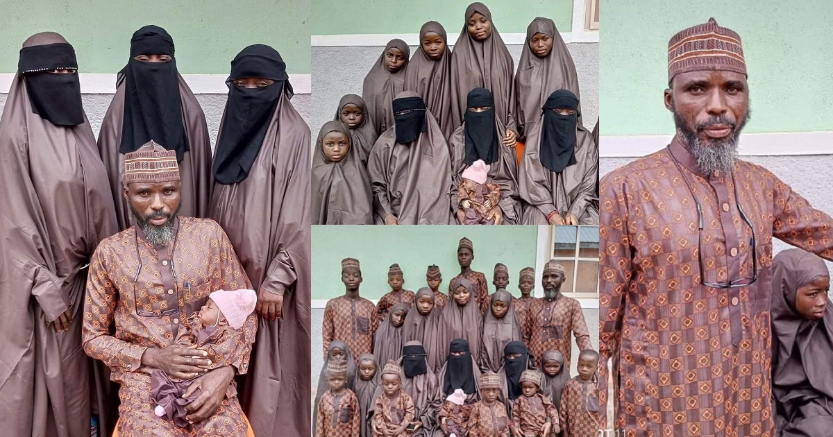 A Nigerian man identified as Baba Lawal has taken to social media to flaunt his three wives and 19 children.