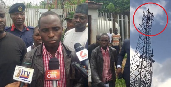 Yesterday, a man climbed a telecom mast to protest the re-election of President Buhari.