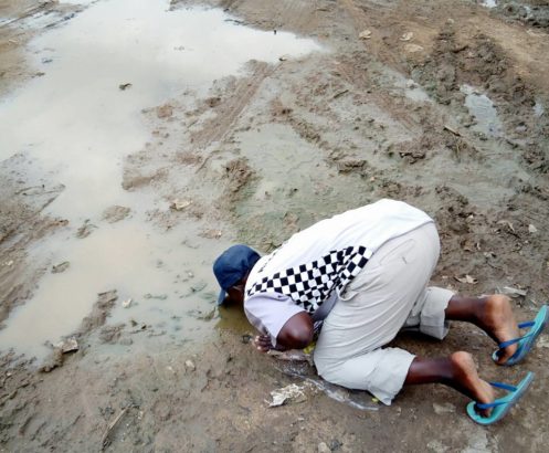 A very loyal supporter of President Buhari has fulfilled his promised to drink mud water, should anytime the president returns back to Nigeria from his medical vacation in London.