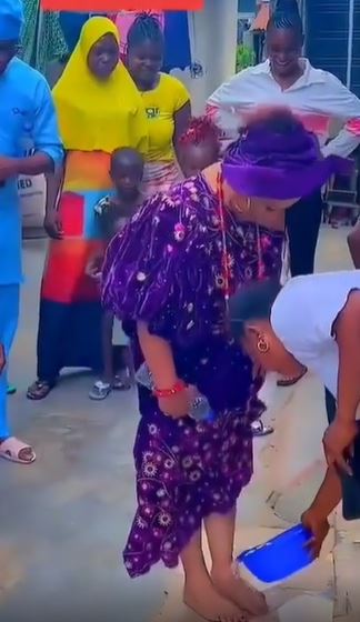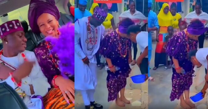 The young man who recently tied the knot with his woman shared a video showing the moment his woman was welcomed into his home with a traditional marriage rite.