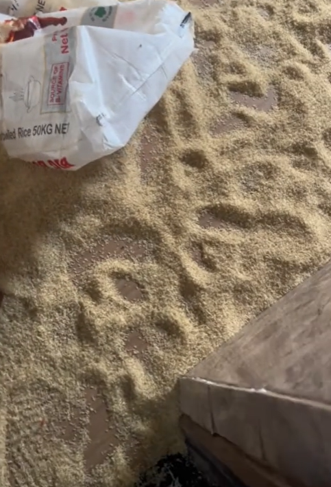 A Nigerian man was infuriated after his dogs tore open a bag of rice, scattering its contents throughout his kitchen.