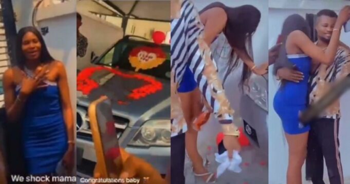 A young Nigerian lady was utterly dumbfounded after her romantic boyfriend proposed to her with a brand new Mercedes Benz.