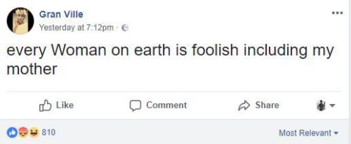 A Nigerian man identified as Gran Ville on Facebook has taken to the platform to declare all women on earth ‘Foolish’ including his mother.
