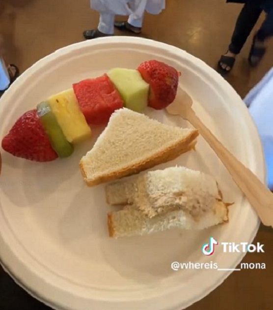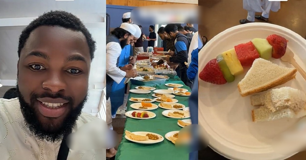 The man, who shared the video on a popular social media platform, can be seen holding a plate containing bread and what appears to be watermelon and other fruits.